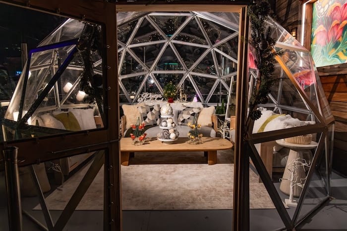 Now available: Merchant & Trade, one of Charlotte's hottest rooftop bars, offers 2-hour private igloo rentals for $100.